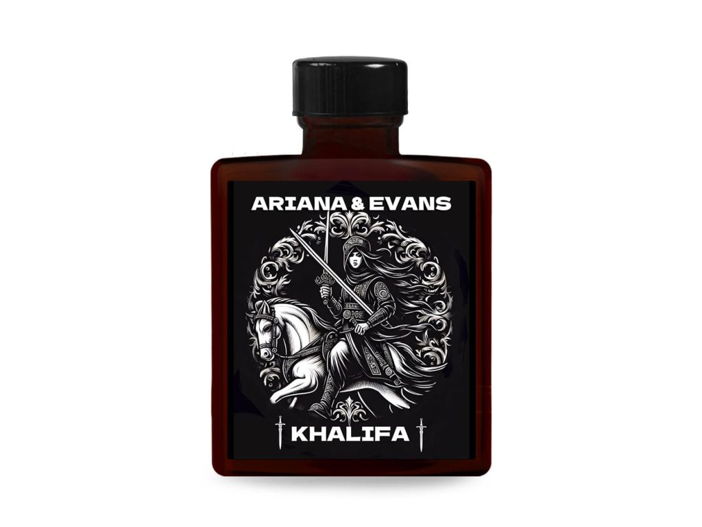Khalifa čerpá inspiraci z vůně Nasomatto Black Afgano a popsat její aroma je čistě subjektivní zážitek. Zeptejte se deseti lidí – každý vám dá jiný popis, ale jedno mají společné… je děsivě krásná. Její aroma je bohaté a pryskyřičné, obklopí smysly hustým, kouřovým závojem oudu a nádechem hašiše. Na začátku je vůně těžší a připomíná něco zakázaného. Temné, sladké tóny kadidla se kolem vás vinou jako kouř z praskajícího ohně, zatímco zemitá vůně konopí doplňuje jejich hloubku. Jak se vůně vyvíjí, objevuje se její sladkost, jemná a nepolapitelná – jako vzdálené světélko světlušky v husté mlze. Vše v jeden celek spojují jemné tóny kůže – jako popraskané, opotřebované kožené desky zapomenuté knihy, na jejichž stránkách jsou ukryta tajemství, které se odváží odhalit jen ti nejodvážnější.