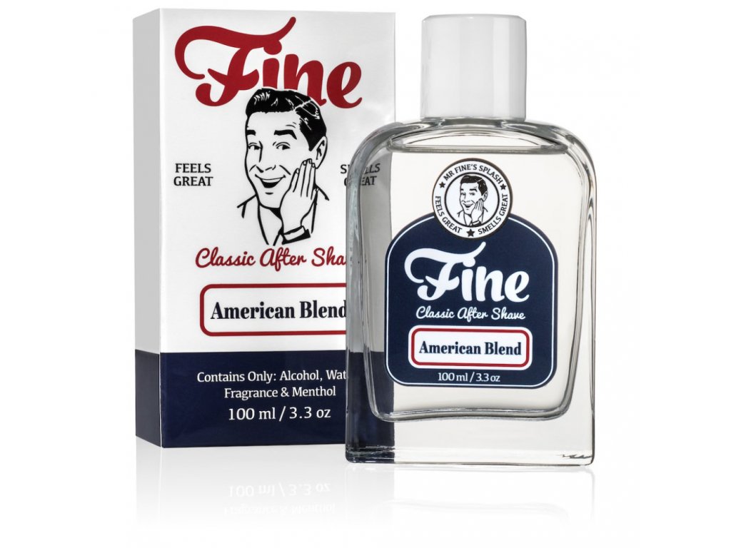 Fine Classic American Blend patří mezi nejoblíbenější vody po holení tohoto amerického výrobce.  Věřili byste tomu, že aftershave lze vyrobit z pouhopouhých 4 ingrediencí? Mr. Fine to dokázal! Smícháním alkoholu, mentolu, parfému a naředěním trochou vody, vznikla tahle kolínská, která vás vrátí do časů, kdy holení nebylo kosmetickou procedurou.
