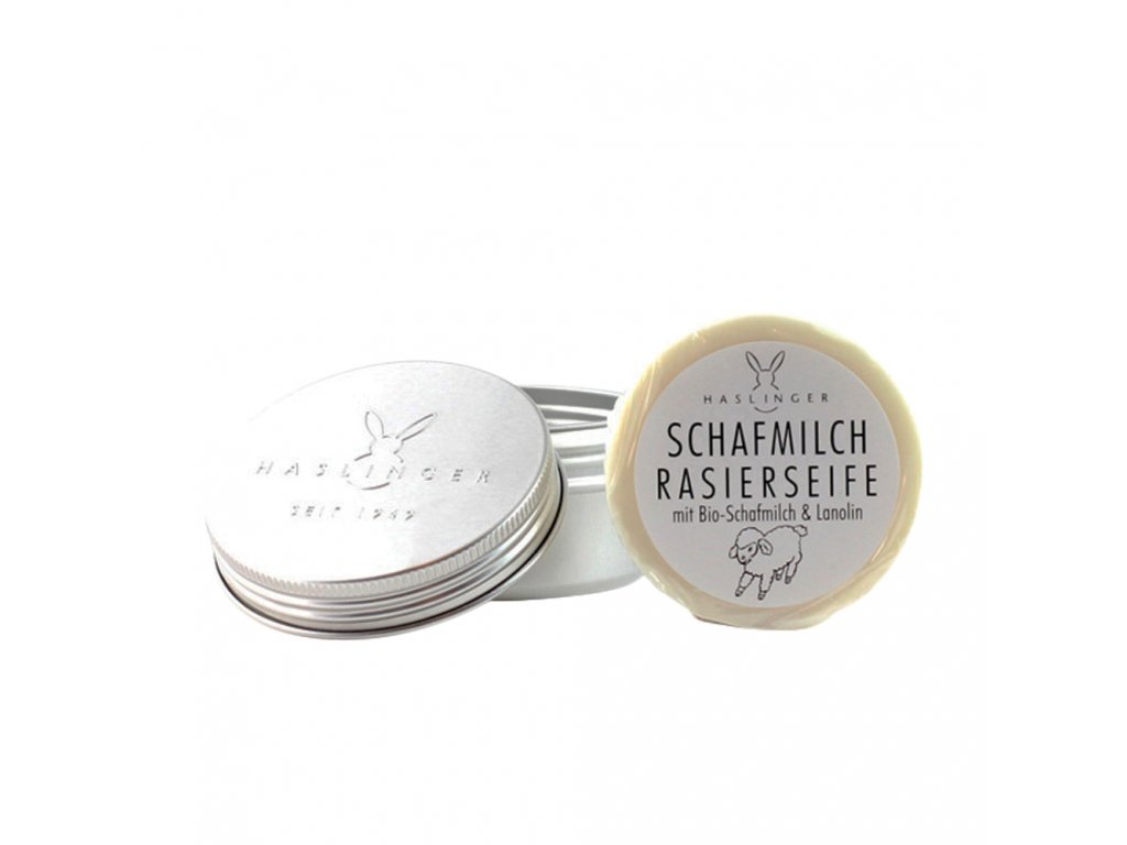 Haslinger Schafmilch mýdlo na holení v hliníkové dóze