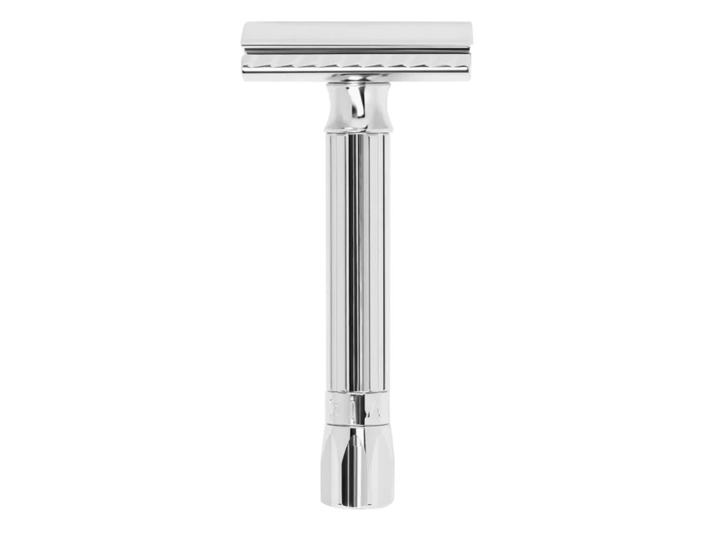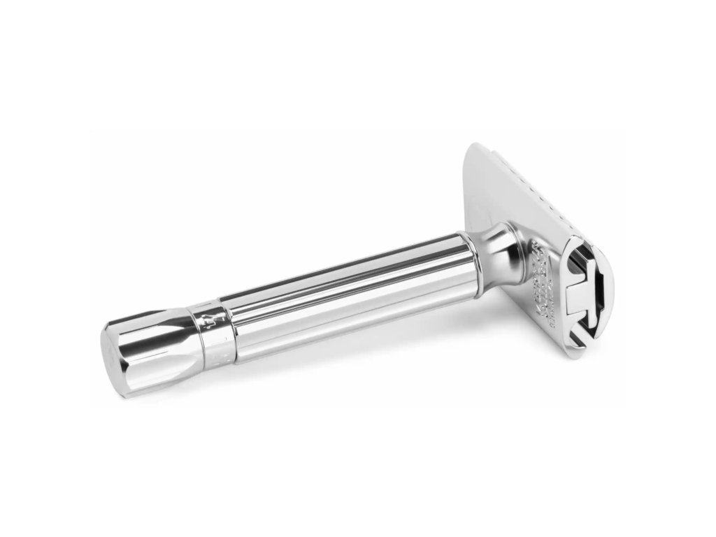 Merkur Progress 500 Chrome je nastavitelný strojek, uvedený na trh v 50. letech minulého století. Mosazná rukojeť s podélným rýhováním a nastavitelná hlavice vyrobená ze slitiny zinku, jsou povrchově zušlechtěny lesklým chromováním. Tento model má chromovanou patku, kterou můžete měnit velikost mezery mezi žiletkou a spodní deskou hlavice (blade gap) na 5 různých úrovní. Od jemného ('1') až po agresivní holení ('5'). Změna mezery samozřejmě mění i geometrii břitu žiletky, a tím ovlivňuje účinnost holení.