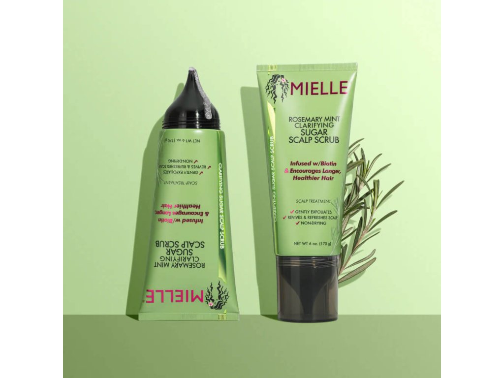 Mielle Rosemary Mint Clarifying Sugar Scalp Scrub využívá jemné cukrové krystalky k odstranění odumřelých buněk a nečistot z pokožky hlavy. Tento ošetřující scrub zároveň odstraňuje přebytečný maz a zbytky stylingových produktů, čímž osvěžuje a revitalizuje pokožku hlavy.