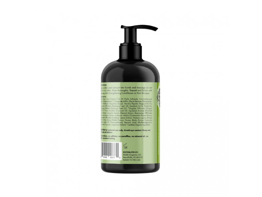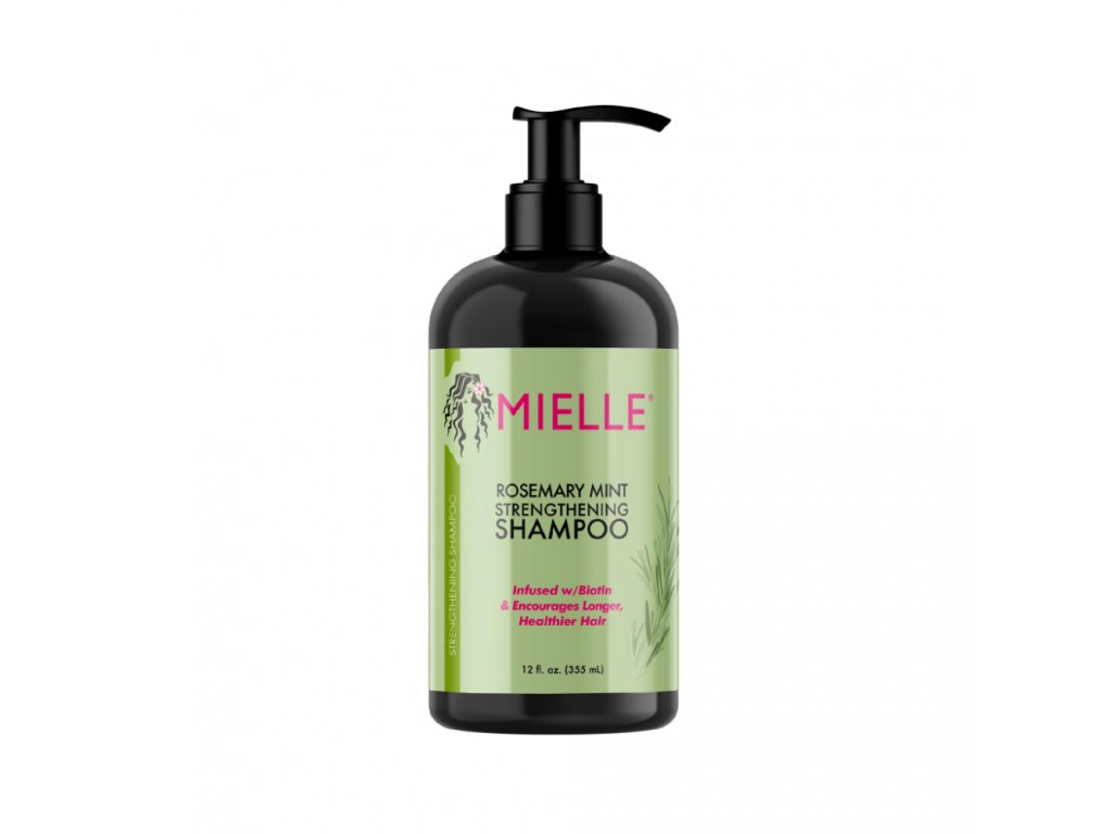 Mielle Rosemary Mint Strengthening Shampoo je posilující šampon s esenciálními oleji z rozmarýnu a máty obohacený o biotin. Rozmarýn a máta stimulují krevní oběh, biotin tvorbu keratinu. Díky svému složení má šampon výborné hydratační a vyživující vlastnosti a účinně zabraňuje jejich oslabování a třepení konečků.