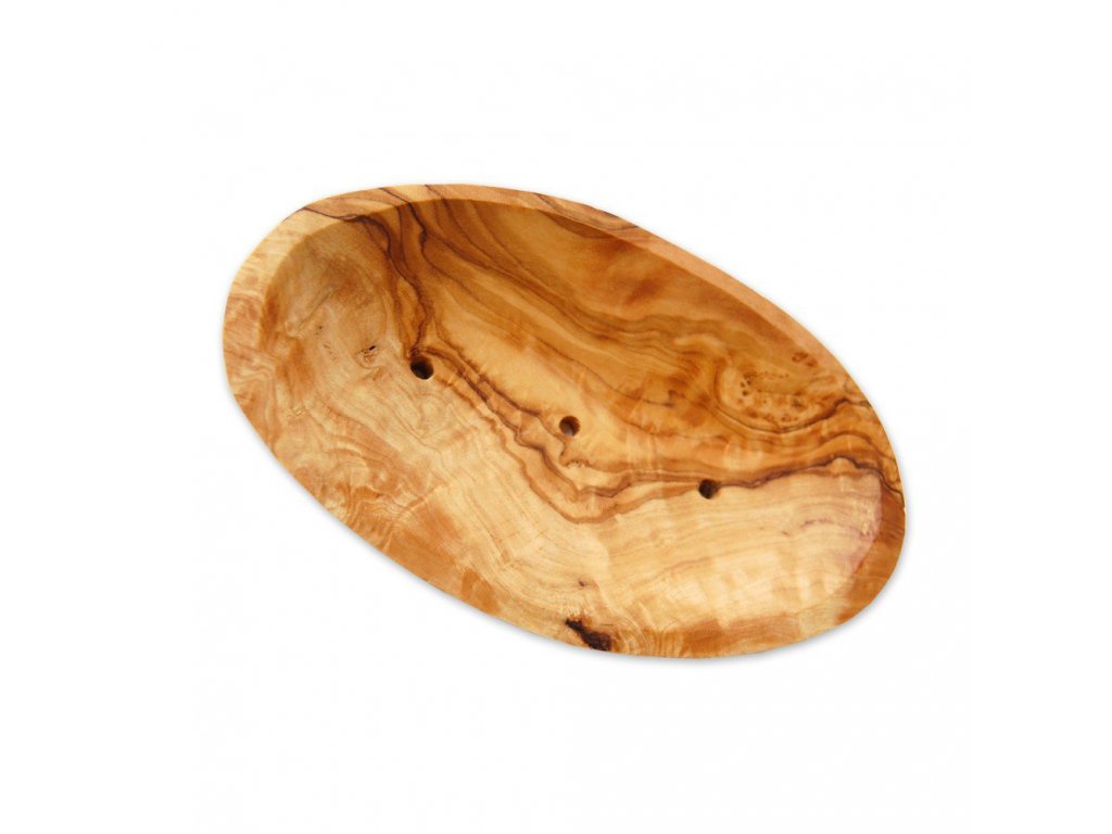 Tvrdost olivového dřeva, jeho povrchové ošetření olejem i otvory pro odtok vody na spodní straně chrání mýdlenku proti působení vlhkosti.