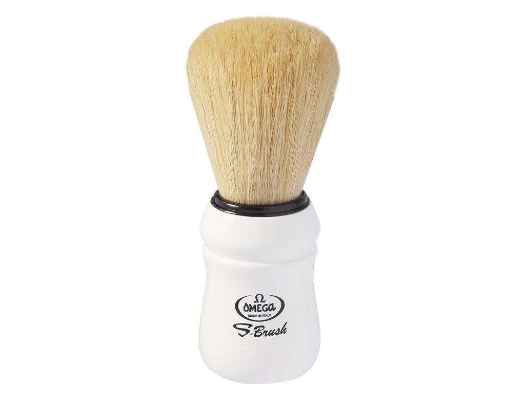 Omega S10049 nemá přírodní štětiny, ale syntetická semi-krystalická polyesterová vlákna, která jsou příjemná na dotek a velmi dobře fungují k našlehání pěny. Vlákna S-Brush imitují prasečí štětiny, nicméně jsou mnohem odolnější-netřepí se, lépe se čistí a mají mnohem delší životnost než jejich přírodní vzor.