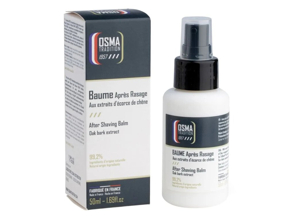 Stejně jako ostatní produkty tohoto výrobce i Osma Tradition balzám po holení je vyrobený z 99% přírodních složek. Obsahuje vodu z květů dubu, která díky svým zklidňujícím a adstringentním (svíravým) účinkům eliminuje podráždění pokožky po holení. Ve složení naleznete i tajemnou ingredience pod názvem Téflose®, což je polysacharid obohacený Rhamnose, který má protizánětlivé a zklidňující vlastnosti: Současně podporuje tvorbu kolagenu a Vlastinu, čímž snižuje napětí pokožky. O hydrataci pokožky se postará olivový olej.