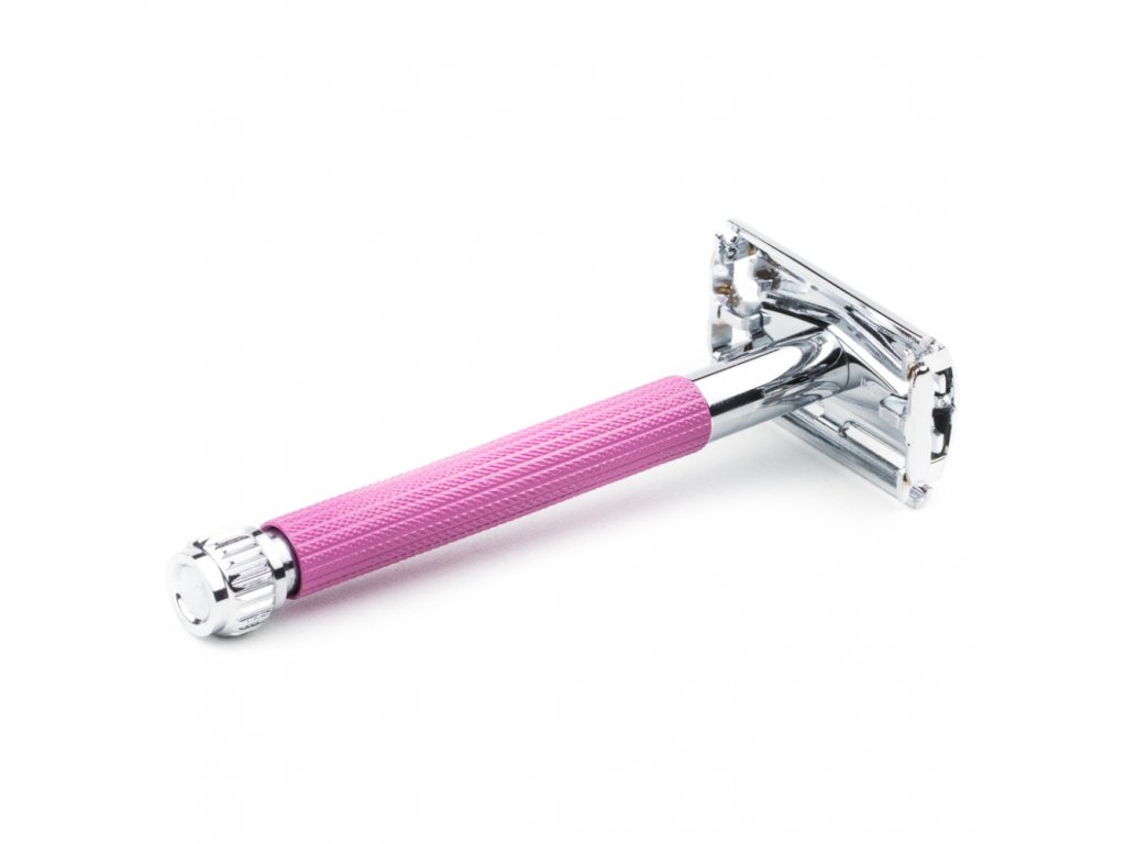Strojek používá systém twist-to-open (motýlek), který výrazně usnadňuje vkládání a výměnu žiletky. Jednoduchým pootočením dolní části rukojeti se hlavice strojku otevře, vložíte žiletku, otočíte zpět a je to!