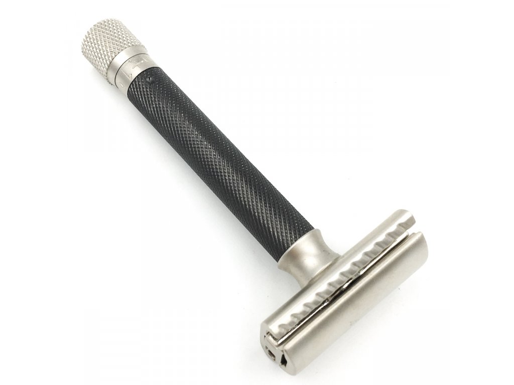 Parker Variant je vyroben z masivní mosazi s matně chromovaným povrchem ve stříbrně-černém provedení. Jedná se o 2 dílný holicí strojek s možností nastavení předpětí žiletky, podobně jako u strojku Merkur Futur. Na výběr máte 5 stupňů nastavení agresivity holení, kde stupeň 1 je nejnižší, vhodný pro citlivou pokožku až stupeň 5 pro nejagresivnější holení velmi tvrdých vousů.