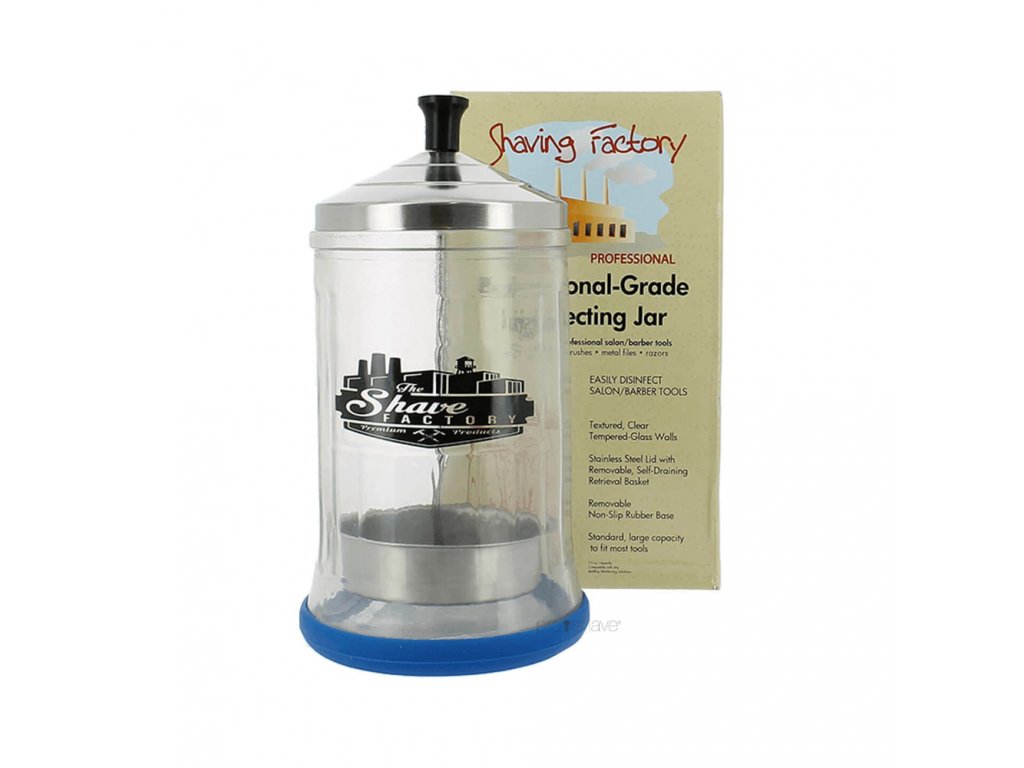 Profesionální dezinfekční nádoba Shave Factory slouží ke sterilizaci všech v salónu používaných nástrojů. Nádoba je vyrobená ze silného, temperovaného skla a lze v ní použít jakýkoliv dezinfekční roztok. Víko z nerezové oceli je připevněno k drenážnímu koši, který usnadní bezpečné a haygienické vyjmutí nástrojů z dezinfekčního roztoku