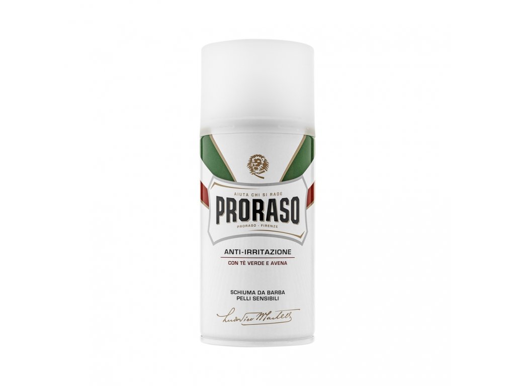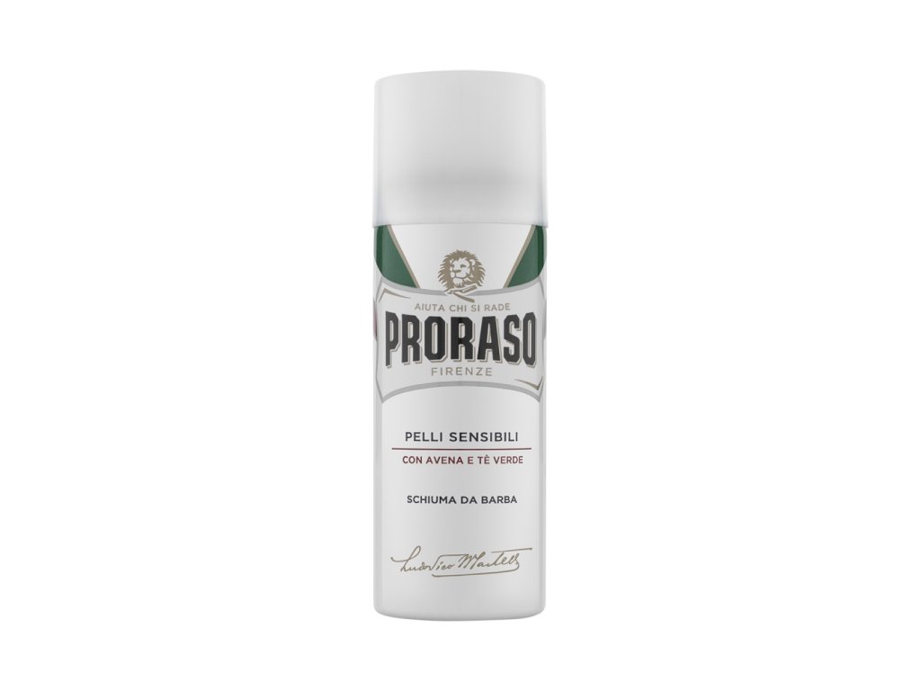 Proraso Pelli Sensibili je pěna na holení pro citlivou pokožku. I v této modernizované podobě 'mýdla na holení' naleznete obvyklé ingredience bílé řady Proraso - výtažky z tymiánu, ovesných vloček a zeleného čaje. Pěna na holení je vhodná pro citlivou pokožku a holení vícebřitými strojky.