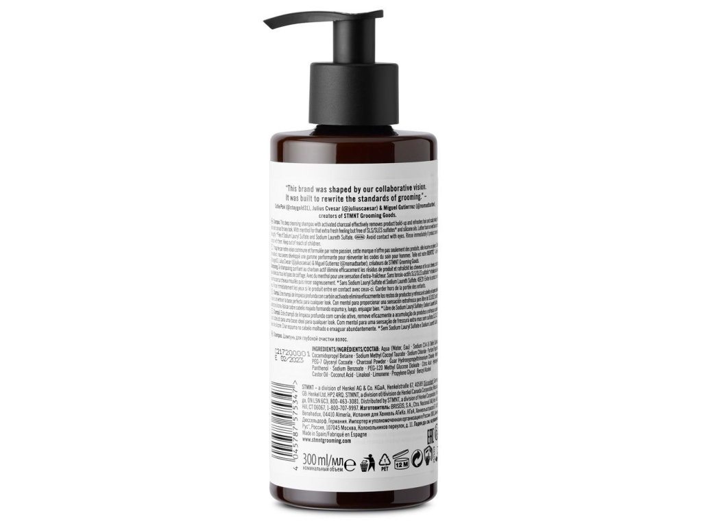 Složení: Aqua (Water, Eau), Cocamidopropyl Betaine, Sodium Methyl Cocoyl Taurate, Coco-Glucoside, PEG-120 Methyl Glucose Dioleate, Sodium Chloride, Sodium C14-16 Olefin Sulfonate, PEG-7 Glyceryl Cocoate, Parfum (Fragrance), Charcoal Powder, Panthenol, Menthol, Caprylyl/Capryl Glucoside, Citric Acid, Sodium Benzoate, Coconut Acid, Hydrogenated Castor Oil, Polyquaternium-10, Linalool, Limonene, Propylene Glycol, Benzyl Alcohol.
