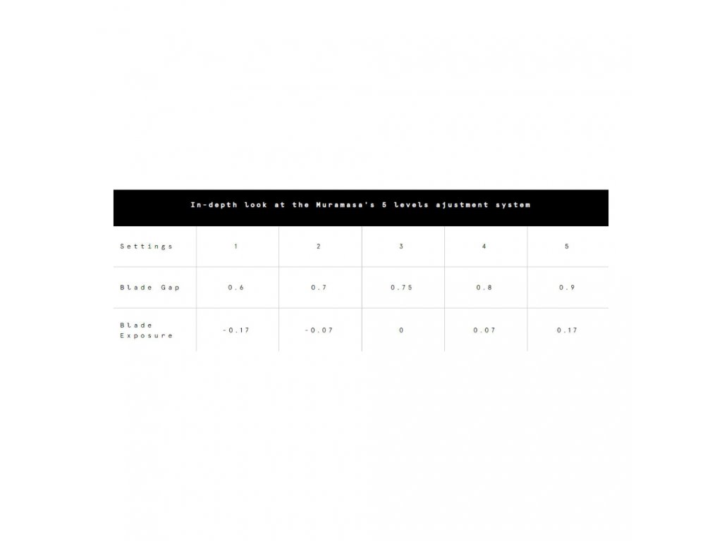 TATARA Muramasa je nastavitelný strojek s plnou lištou s unikátním systémem posuvem základní desky. Nastavení agresivity strojku tak neprobíhá zvětšením mezery (blade gap) mezi horní a dolní deskou jeho hlavice, ale roztažením dolní desky. Tímto způsobem se tak mění jak mezera (blade gap), tak i přesah žiletky (blade exposure). V základním nastavení na stupni 3 je blade gap 0.75 mm a exposure 0 mm. Směrem dolů blade gap klesá a exposure je negativní, tudíž i holení je jemnější. Vyšší stupně naopak nabízí holení agresivnější. Obecně se dá říct, že TATARA Muramasa je navržená spíše jako méně agresivní strojek, se kterým se můžete holit každý den.