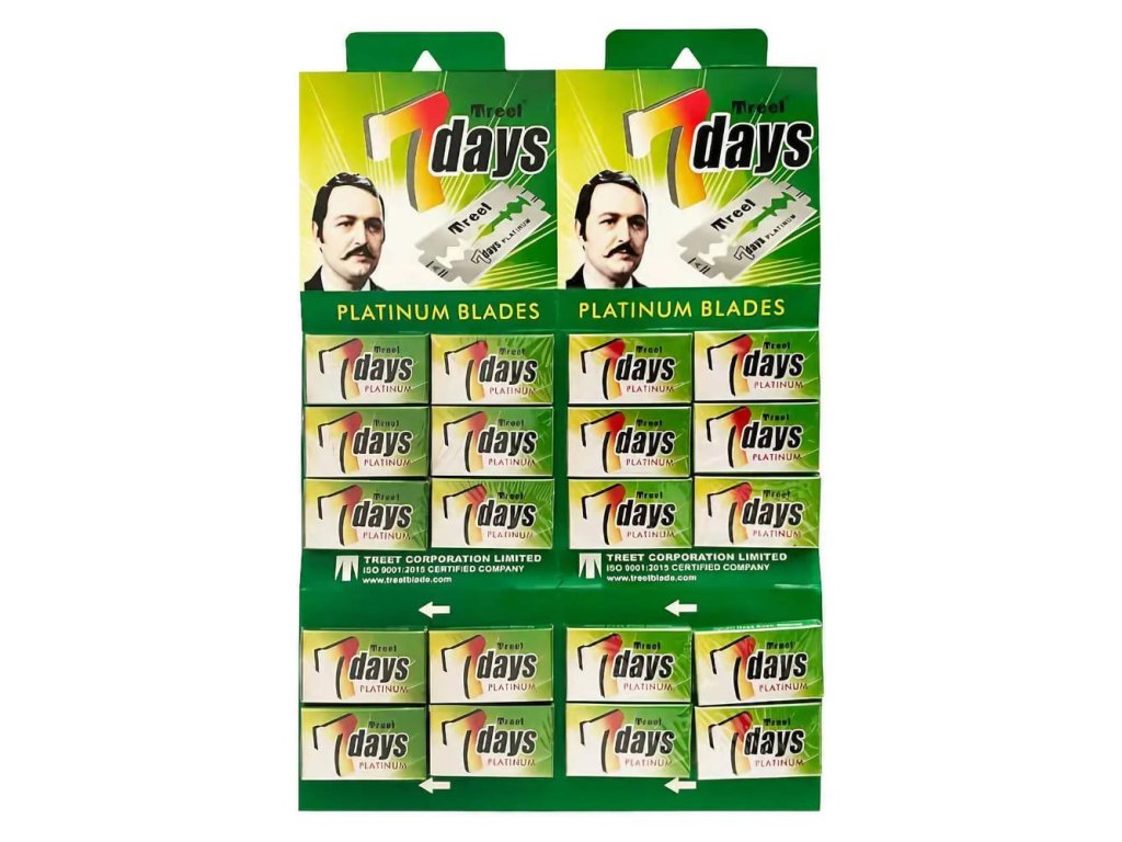 Treet 7 Days Platinum jsou jedním z nástupců slavných Treet Carbon Steel. Pákistánský výrobce zahájil produkci žiletek z nerezové oceli sice až v roce 1984, ale během pár let si vydobyl nepřehlédnutelnou pozici v Asii. Posledních pár let si žiletky Treet postupně získávají oblibu i mezi zákazníky v Evropě.