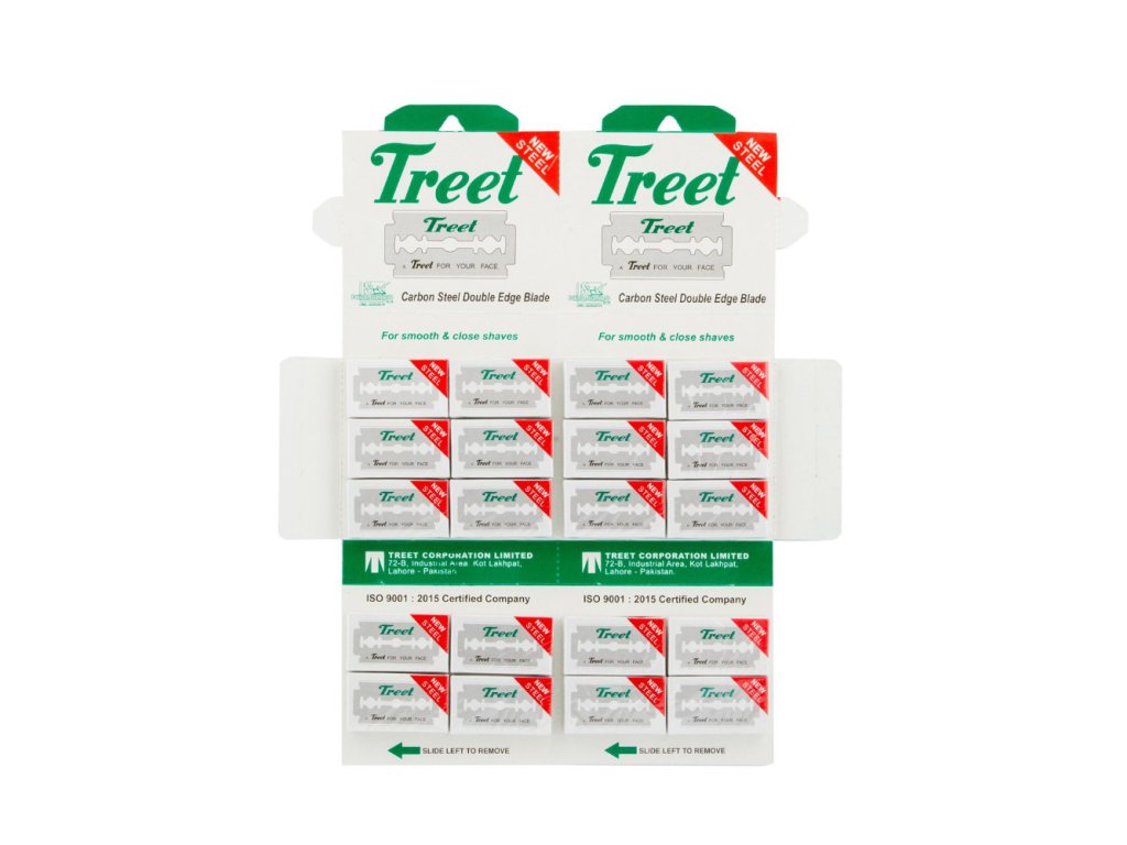 Treet New Steel žiletky jsou vyrobeny z nerezové oceli, potažené speciálním coatingem. Ten by měl chránit jejich ostří a současně bránit nepříjemnému "táhnutí" žiletky