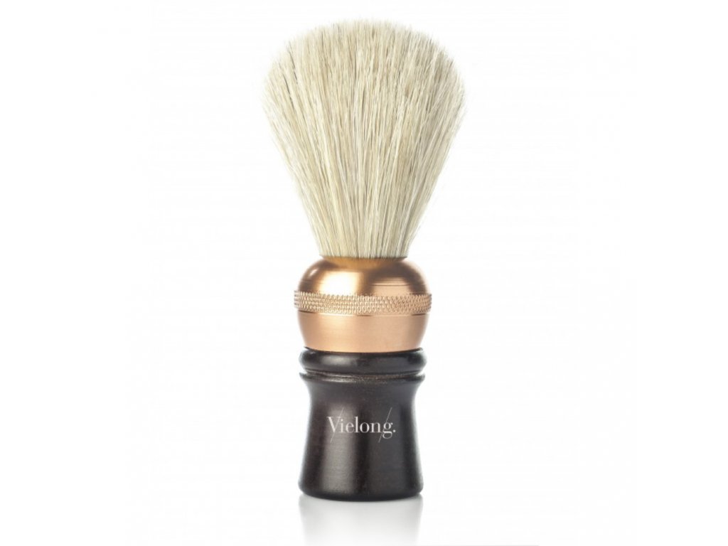 Štětka na holení Vielong Professional Española je profesionální štětka vyrobena ze směsi přírodních bílých koňských žíní (přibližný poměr je 65% z ocasu a 35% z hřívy). Rukojeť je vyrobena z tvrdého dřeva Wenghé ošetřeného lakem, zakončená kovovým zdobeným prstencem měděné barvy, který štětce dodává solidních 80 g váhy.